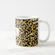 Ett mugg med en snyggt mönster. Exotiska svarta leopardfläckar på guld. Vild ännu elegant stil. En rektangel med vit färgad ram med en gräns med faux guld överst med personligen inuti.