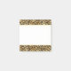 Fästande anteckningar med snyggten mönster. Exotiska svarta leopardfläckar på guld. Vild ännu elegant stil. En vit färgad rektangel ram med en faux guld-gräns överst så att du kan skriva inuti.