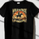 Här är en rustik vintage-stil t-shirt med en ensam cowboy som kör en häst över öknen med en dramatisk solnedgång och frasen "Vild & Free" 🤠 🌅 ✨