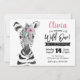 Den här vackra VILDEN En inbjudan på första födelsedagen innehåller en vattenfärg, handmålad zebra-djur med rosa blomma. Anpassa med din ordalydelse för att fira din Vild 1.