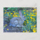En vild kanin såg ut i ett plåster av vild gula blommor.