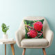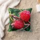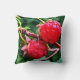 Vild röda hallon är temat för bra konst dekorativ kudde. Två juikbär med hjortsäd färg är fästa vid det rödbruna brunt grenar. Grönt löv och en akvaturakomisbakgrund kompletterar den abstrakta utformningen. Fotografiet har blivit digitalt bättre för att skapa en imponerande känsla.