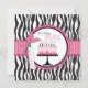 Zebra-chicen skriver ut med shock rosa födelsedagskalas med band och buggtrimer.
