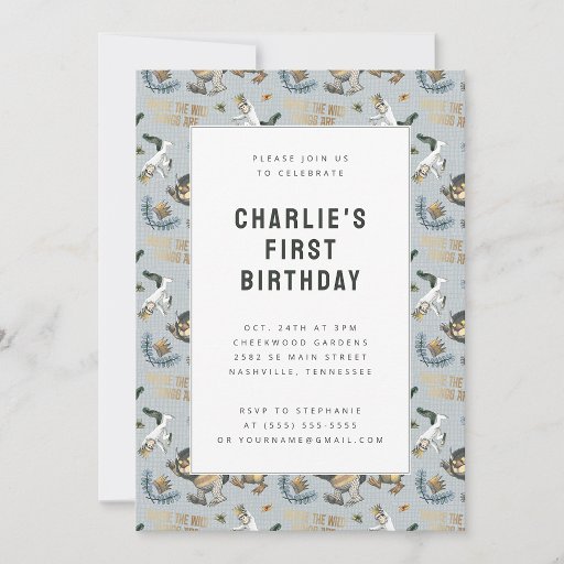 Fira din lilla Vild En stor milstolpe med den här charmerande "där Vilden Sak är" mönster 1:a födelsedagsinbjudan. Med en lekfull upprepningsdesign av Max i hans ikoniska krona och Vild Sak, tillsammans med nyfikna skogsinspirerade detaljer, fångar den här inbjudan den äventyrliga innebörden i den älskade artikeln. Anpassa med ditt barns namn-, ålders- och party-information för att skapa en magisk storybook-temad inbjudan till ett oförglömligt firande.