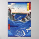 Vild av havets sönderfall på sten. Berömd Views of the 60 Provinces - Rough Sea at Naruto in Awa Province. Hiroshige (1797-1858), japansk målare och tryckare, särskilt känd för sina landskapsbilder. Den sista underbara figur av Ukiyo-e-skolan, eller den populära utskriften, förvandlade vardagens landskap till intima, lyriska scener som gjorde honom ännu mer framgångsrik än hans contemporary, Hokusai.
