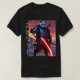 vild Spirit T-Shirt. Utförlig utformning av en pandakrigor i cyber samurai armor, som står i ett heroiskt läge ovanpå backe och håller en glänsande katana. Röd solnedgång i bakgrunden, dramatiska skuggor och ljus, futuristiska pansar med nyaccenter, uttryckligt ansikte och beslutsamhet i ögon.
