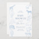 Söt, blått tema, vild, Afrikansk babydusch inbjudan