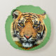 Vild Tiger Animal Ansikte på Grönt Rund Kudde