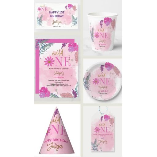 Fira din flicka första födelsedag med vår fantastiska Vild En födelsedagspresent märkre. Den här snygga designen har vilda blommor och färgstarka tropiska löv som ställs in mot en ljus rosa vattenfärgsbakgrund och som skapar ett viskigt och dynamiskt utseende. Perfekt för ett minnesvärt firande, denna märkre blandar på ett vackert sätt naturens charm med lekfull elegans och bjuder in gäster att gå med i glädjen och festligheterna under din lilla speciella dag.