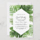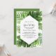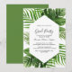 Fira din examen i tropisk stil med denna livfulla inbjudan. Med en exotisk samling av gröna akvarell bananpalmblad, ormbunkar och frodig lövverk, fångar den essensen av en strand- eller sommarfest. Lägg till en personlig touch genom att anpassa baksidan av kortet med hedersgästens namn och evenemangsinformation för en verkligt unik fest.