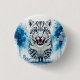 En livfull konstverk med en rytande vit leopard centrerad mitt i en dynamisk blå stänkdesign, som betonar styrka, vildmark och kreativitet.