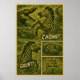 Denna intensiva illustration av tecknad-stil fångar en dramatisk djungelscen där en zebra snävt undkommer de dödliga käkarna på en krokodil mitt i en lurande hippos. Med djärva visualer och slående text som "CHOMP!" och "KOR AT ER EGEN RISK" framkallar denna design vildens risker och kaos. Paletten och den handritade paletten i vintage ser ge ut att vara en nostalgisk men ändå spännande vädjan för fläkt av vilda djur, safari eller äventyr art. Idealisk för djur älskare, tecknad konstsamlare och de som dras till dramatiska naturillustrationer.