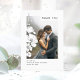Det här bröllopstackkortet framhäver vackert ditt vertikala foto, inramat av handritade vilda blommor. Den botaniska illustrationen, avbildad i mjuka grå och vita nyanser, fångar elegansen hos en pennteckning och ger en särpräglad och tilltalande touch. Med minimalistisk, skarp och rak typografi riktar designen strålkastarljuset på ditt fantastiska bröllopsporträtt. Om ängsblommor fångar ditt hjärta och du vill uttrycka din tacksamhet på ett djupt personligt sätt, är den här charmerande designen det perfekta valet.