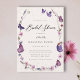 En elegant boho blomster ram bröllopsdusch inbjudan med vilda blommor (cosmos och andra vanliga vilda blommor och gräs) i akvarell, lila och rosa fjärilar med guldglitter (dessa är digitala effekter, inte riktig folie eller glitter!) och modern kalligrafi, med en rosa vildblomma på baksidan och en modern elfenbensvit bakgrund. Elegant och chic, det är den perfekta inbjudan för en trädgårdsbröllopslunch, brunch eller fest i en bakgård, eller för alla brudar som älskar vilda blommor, fjärilar och rustika, lantliga mönster med en touch av romantisk boho.