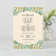 FRÅN WILDFLOWER BLOSSOMS BRÖLLLOPSKOLLEKTION: Spara datumet. Whimsical blommor i färgerna Chartreuse Grön och Teal / Turkos med en vintage gul bakgrund. Om färgschemat inte är vad du ville ha, vänligen maila paula@labellarue.com innan en beställning görs. Se till att du kontrollerar din design innan du skickar in din beställning. Om du har frågor om designen, låt mig veta så hjälper jag dig gärna. Tack!