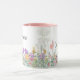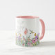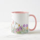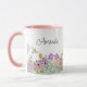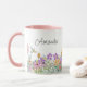 Denna keramiska kaffekopp har en vacker design med vilda blommor i rosa och lila blommor och grönska. Personifiera denna kopp med ditt namn eller annan text. Denna kaffekopp skulle vara en genomtänkt husvärmnings- eller födelsedagspresent.