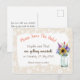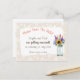 Den livliga färgen hos vilda blommor i en kruka, mot en ljus peoniblommig rand, gör denna design till ett mycket populärt val för en rustik tematiskt bröllop. Postkort är ett enkelt men effektivt sätt att informera dina gäster om din stundande stora dag!