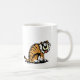 Vilda cartoon-mugg med en förvånad tiger sittande på en kaffemugg.