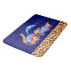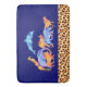 En badmatt designad med en exotisk orange färgad leopard i gräns längs grund. Illustrerad med en digital vattenfärgsbild av en flock av vilda djur som går samman. Djuren är bland annat en hoppande delfin, en giraff, elefant, kangaroo, rhino, lejon och leopard. Bakgrunden är en blåaktig lila färg.