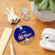 En nyckelkedja av personlig designad med en färgad av exotisk orange som leopard skriver ut gräns längs grund. Illustrerad med en digital vattenfärgsbild av en flock av vilda djur som går samman. Djuren är bland annat en hoppande delfin, en giraff, elefant, kangaroo, rhino, lejon och leopard. Bakgrunden är en blåaktig lila färg. Anpassa med ditt monogram från början inuti en vit cirkel och även ställe ditt namn längs toppen.