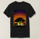 Enastående, ljusa och fredliga solnedgång på Vilden African Savanna Ligcape med Vilda djur Shapes. Ursprungligen skapat med Hi Quality/Hi Resolution Vector Graphic Art Technique Copyright BluedarkArt TheChameleonArt.