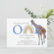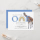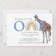 En söt vild en akvarell safari djur giraff och regnbåge blå pojkens första födelsedagsfest inbjudan. Förtjusande blå och senap pastellfärger.