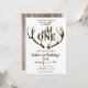 Vilda hjorthorn Rustik 1-års födelsedagsfest Inbjudningar