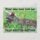 Denna vykort visar en utspädd sköldpadds- katt, och texten "vilda katter behöver kärlek för" upptill och "TRAP-NEUTER-RETURN" som är längst ner av vykortet. Denna är en underbar vykort för TNR-kliniker som önskar att tacka medborgare för deltagande i TNR projekterar. Den är också underbar för vilda kattvaktmästare som önskar till spridning ord om fälla-neutrum-retur i deras gemenskap.
