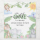 Barnkalas-vinsetiketter med akvarellillustrationer av en apa, papegoja, noshörning och giraff som sitter i en grön djungelbakgrund. Teckensnittsstilar, storlek och färg kan ändras genom att klicka på länken Anpassa ytterligare efter att du har anpassat.