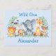 Vilda Safari Djur Födelsedagsinbjudan Blå Vykort