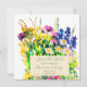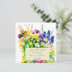Färgglada vilda sommarblommor, målade med akvareller, blå, gula, rosa och lila. Anpassa det för ditt eget bröllop!