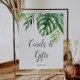 Den här vilda tropiska palmkort- och present skylten är perfekt för ett strand- eller destinationsbröllop eller brudvisning. Designen har en exotisk sammansättning av gröna akvarellblad från bananpalmer, ormbunkar, lövverk, botaniska växter och grönska för en tropisk sommarstämning. Textraden längst ner på skylten kan anpassas med datumet, brudens och brudgummens namn eller ett kort meddelande som "Tack". Den här skylten kan användas för ett bröllop eller någon annan tillställning eller fest.