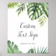 Denna vilda tropiska palmkort & present anpassad texts skylt är perfekt för ett strand- eller resmålsbröllop. Designen har en exotisk sammansättning av gröna akvarell bananpalmsbladsblad, ormbunkar, lövverk, botaniska växter och grönska för en tropisk sommarkänsla. Anpassa texten till vad du vill! Denna skylt kan användas för kort och presenter, gästbok, bröllop hashtag, förmånsgåvor, efterrätten bar - vad som helst! Den kan användas för ett bröllop, bröllopsdusch, repetitionsmiddag eller någon annan tillställning. Textraden längst ner på skylten kan anpassas med datumet, brudens och brudgummens namn eller ett kort meddelande som "Tack". Om du vill ha flera samordnade skyltar, anpassa och lägg