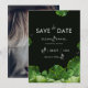 Vilda tropiska palmblad och moderna bröllopsfoton spara datumet