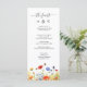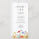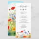 Ge din bröllopsfest charm av naturen med vår anpassningsbara meny för vårängens vilda blommor. Denna förtrollande meny visar en fantastisk avbildning av en våräng prydd med en livfull samling vilda blommor. Den akvarellillustration fångar vackert naturens skönhet och ger en pittoresk bakgrund för dina kulinariska detaljer. Den dominerande färgpaletten omfattar fantastiska gula blommor som utstrålar värme och glädje, som smidigt övergår i en kaskad av röd-orange blommor och slutligen ömtåliga blå blommor som tillför en touch av stillhet. För att ytterligare anpassa denna meny, klicka på länken "anpassa ytterligare" och använd vårt designverktyg för att justera mallen enligt dina önskemål.