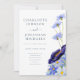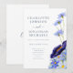 vilda blommor med elegant guld folie typografi skrift marinblå boho rustik bröllopsinbjudan. Lägg till brudens och brudgummens monogram initialer till denna vackra sommarblommor konstnärsdesign handmålad akvarell konstverk inklusive blåklint, vallmo, cosmos, forget me not och lövverk. Botaniskt tema bröllopspapper med vår- och sommarblommor i dammig blå, rosablå, marinblå, lila, grön och gul. Lättanvänd mall och perfekt för ett unikt trädgårdsäng tema bröllop. Unikt originalkonst av konstnären Catherine Sweetman.