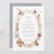 Modern, romantisk BOHO-vildbloms-hjärtansdagsinbjudan design målades för hand i akvarell av den internationellt licensierade artisten och designern, Audrey Jeanne Roberts. Varma, dämpade torkade vildblommor kontrasterar vackert med den svala dammiga blågrå och är arrangerade i en lös oval ram med linjekonst och ett par ömtåliga fjärilar och Gingko-blad grönska. Denna version har en lätt och luftig vit framsida med medelstark skifferblå text och bakgrund på baksidan. Copyright.