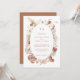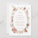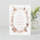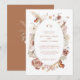 Modern, romantisk BOHO-vildblomma bröllopsinbjudan design målades för hand i akvarell av den internationellt licensierade artisten och designern Audrey Jeanne Roberts. Varma, dämpade torkade vildblommor smälter vackert med den rostiga terrakotta-bakgrunden och är arrangerade i en lös oval ram med linjekonst och ett par ömtåliga fjärilar och Gingko-lövgrönska. Denna version har en ljus och luftig vit framsida med terrakotta-text och bakgrund på baksidan. Upphovsrätt.