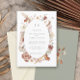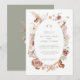 Modern, romantisk BOHO-vildblomma bröllopsinbjudan design målades för hand i akvarell av den internationellt licensierade artisten och designern Audrey Jeanne Roberts. Varma, dämpade torkade vildblommor är arrangerade i en lös oval ram med linjekonst och ett par ömtåliga fjärilar och grönska av Gingko-blad. Denna version har en lätt och luftig vit framsida med medelstark grön text och bakgrund på baksidan. Copyright.