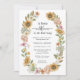 Vildblomma Boho Barnkalas Inbjudan. Denna underbara barnkalas inbjudan har fantastiska handmålade akvarell rosa och dammiga blå vildblommor, vackra gula solrosor och salvia grönska arrangerade som en vacker bukett som är perfekt för dem som älskar whimsical boho / bohemisk elegans. Hitta matchande föremål i Modern Sunflower Bröllopssamling.