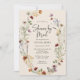Vildblomma Boho bröllopsinbjudan per post. Denna stilrena och eleganta bröllopsinbjudan till brudfesten har vackra, handmålade akvarellvildblommor arrangerade som en vacker bukett och elegant kalligrafiskrift.