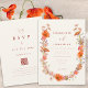 Unikt Boho-vildblomma höstbröllops QR-kod-inbjudan. Med sina fantastiska handmålade höstbetonade bohemiska akvarellblommor fångar denna inbjudan essensen av naturens skönhet, insvept i en torkad blomma vispad kransdesign. Färgpaletten präglas av varma, jordnära toner av bränt orange, brunt, gult, grönt, lila och rosa, vilket gör den till ett mångsidigt val för en mysig höstbröllopsfirande.