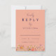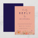 Denna eleganta och romantiska vilda blommor boho marinblå persika höstbröllop RSVP bifogad kort är utformad för att komplettera alla av de vilda blommorna höst bröllopsinbjudningar. Med en harmonisk blandning av höstliga nyanser som bränt orange, terrakotta, korall, bränd umber, gul, orange, persika och jordiga gröna nyanser, fångar detta kort essensen av en höstfirande. De känsliga handmålade akvarell vilda blommor frammanar värmen och charm av säsongen. Den marinblå och vita bakgrunden tillför elegans, medan de fantasifulla blommorna i nyanser av bränt orange, bränd umber, korall, gul, lila och rosa ger en touch av naturens skönhet till designen. Den eleganta fantasifulla skrivstilen och moderna typografin genomsyrar kortet med sofistikation, vilket gör det till det perfekta sättet att inbjuda dina gäster att dela din speciella dag. Designad av konstnären Catherine Sweetman, bibehåller detta RSVP-kort den mysiga, intima känslan av en boho-inspirerad firande medan det ger