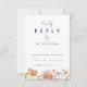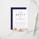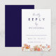 Detta eleganta och romantiska vildblomma boho marinblå höstbröllop RSVP-bifogade kort är designat för att komplettera alla av vildblommorna höst bröllopsinbjudningar. Med en harmonisk blandning av höstliga nyanser som bränt orange, terrakotta, korall, bränd umber, gul, orange, persika och jordiga gröna fångar detta kort essensen av en höstfirande. De känsliga handmålade akvarellvildblommorna frammanar värmen och charm av säsongen. Den marinblå och vita bakgrunden tillför elegans, medan de fantasifulla blommorna i nyanser av bränt orange, bränd umber, korall, gul, lila och rosa ger en touch av naturens skönhet till designen. Den eleganta fantasifulla skrivstilen och den moderna typografin genomsyrar kortet med sofistikation, vilket gör det till det perfekta sättet att inbjuda dina gäster att dela din speciella dag. Designad av konstnären Catherine Sweetman, behåller detta RSVP-kort den mysiga, intima känslan av en boho-inspirerad fest samtidigt som den tillhandahåller