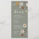Bröllopsmenykort kännetecknas av boho-stil, blomsterkonst, Sagegrön och beigefärgade färger, med en blandning av olika typsnitt, ofta i olika storlekar, för att skapa en unik, eklektisk look som gör denna meny:s naturliga estetik. Samling: https://www.zazzle.com/collections/sage_green_boho_wildflower_collection-119174346394052758