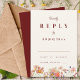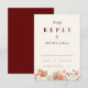 Detta eleganta och romantiska terrakotta brända orange svarskort för bröllop med vildblommor är designat för att komplettera alla av vildblommorna till höstens bröllopsinbjudningar. Med en harmonisk blandning av höstfärger som bränd orange, terrakotta, burgunder och jordiga gröna toner fångar detta kort essensen av en höstfirande. De känsliga handmålade akvarellvildblommorna frammanar värmen och charm av säsongen. Den beige och terrakotta brända orange bakgrunden ger djup, medan de fantasifulla blommorna i nyanser av orange, gul, lila och rosa ger en touch av naturens skönhet till designen. Den eleganta skrivstilen och den moderna typografin ger kortet en sofistikerad känsla, vilket gör det till det perfekta sättet att inbjuda dina gäster att dela din speciella dag. Designad av konstnären Catherine Sweetman, behåller detta svarskort den mysiga, intima känslan av en bohoinspirerad fest samtidigt som det ger ett lätt-anpassat format för dina gäster att svara.