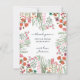 Modern boho ljusa vildblommor bohemisk bröllopsfest. Med rosa, persika och gröna nyanser botaniska blommor inspirerade av vildblommor och akvarell rustika trädgårdar med subtil grönska och modern boho typsnitts typografi på vit bakgrund med blommigt mönster på salvia grön bakgrund på baksidan. Originalkonst av Caroline Bonne Müller