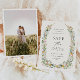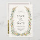 Meddela din speciella dag med stil med detta sofistikerade "Spara datum"-kort med en vacker illustrerad vildblomma ram. Designen kombinerar en tidlös boho-färgskala med modern typografi och skapar en lyxig och romantisk känsla. Lägg till ditt foto på baksidan.