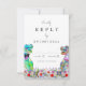 Om du och din fästmö älskar dinosaurier, varför inte lägga till ett lekfullt boho-vildblomma dinosaurie-temat inbjudan RSVP-svar bifogad kort. Med färgglada psykedeliska T-Rex dinosauriebrud och -brudgumsset i en livfull förhistorisk boho-vildblommeäng ger detta kort en unik och fantasifull känsla till er speciella dag. Perfekt för en vår- eller sommarbröllop med elegant modern script-typografi, både roligt och lätt att anpassa, vilket gör det enkelt att matcha er bröllopsstil. Handmålade vår- och sommarvattenfärgblommor med färgglad dinosauriebrud och -brudgum originalkonst av konstnären Catherine Sweetman, vattenfärgskonsten visar en charmig blandning av sommarblommor och dino-inspirerad kärlek. Perfekt för er bröllopsmottagning eller repetitionmiddag