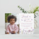 Skicka ett hjärtligt tack med detta charmiga fotokort med akvarell vildblommor, mjuka fjärilar och ditt lilla barns söta leende. Ett vackert sätt att visa tacksamhet efter en trädgårdsinspirerad födelsedagsfirande.